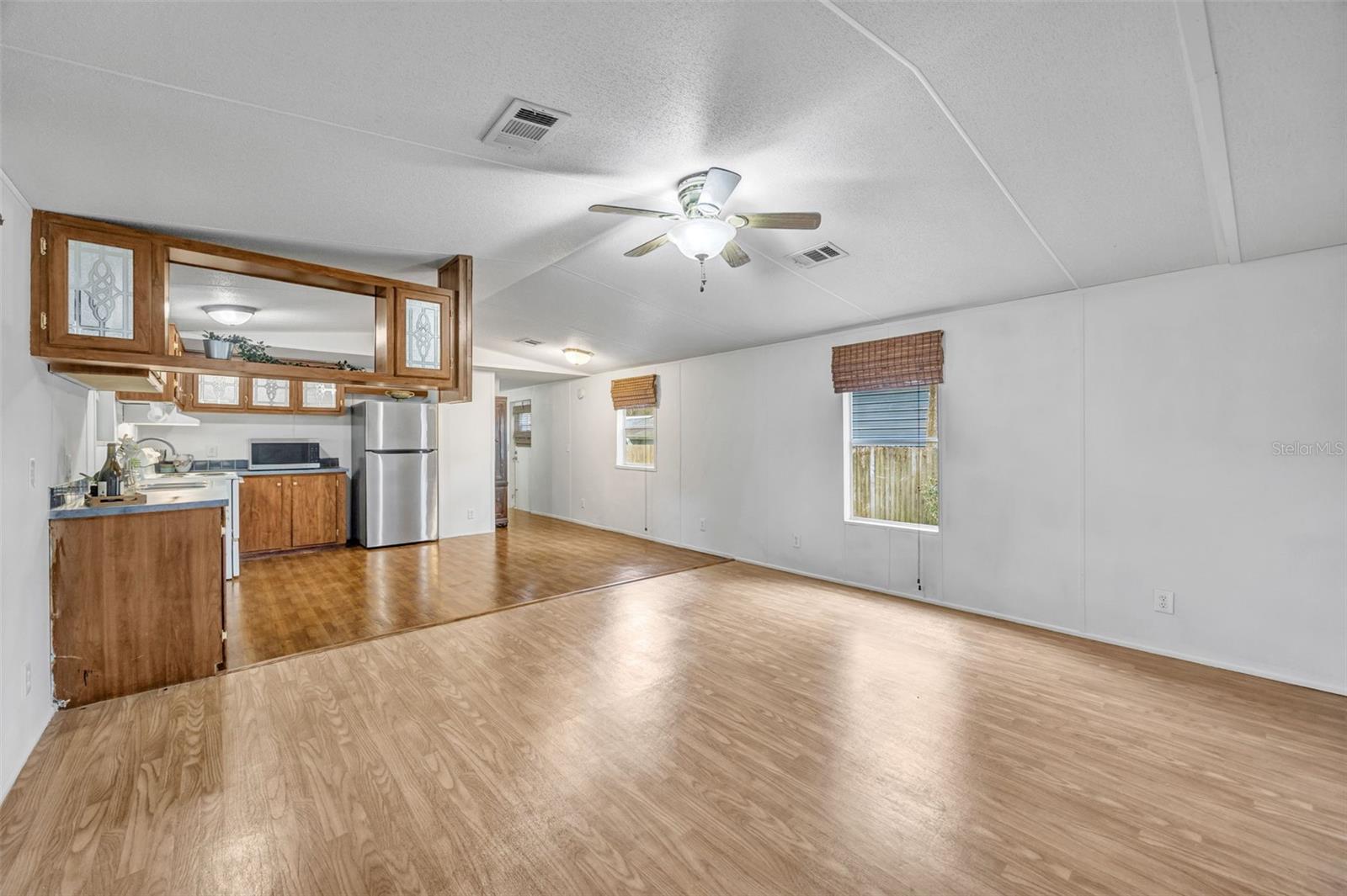 A great value! Come see this well-maintained 3 bedroom, 2 bathroom home - offering comfort, functionality, and great outdoor space. Situated on a nicely sized and fully fenced lot, this home features a large covered deck, perfect for relaxing or entertaining year-round. Inside, you'll find updated bathrooms and an open flow layout that maximizes space. An additional huge storage room provides endless possibilities and could easily serve as a home office or hobby space. The property also includes an exterior storage shed for added convenience and storage. The large driveway and covered carport allows for plenty of parking! No HOA or CDD. With pride of ownership evident throughout, this home offers affordable living with room to grow -- Move-in ready and full of potential! No lot rent!