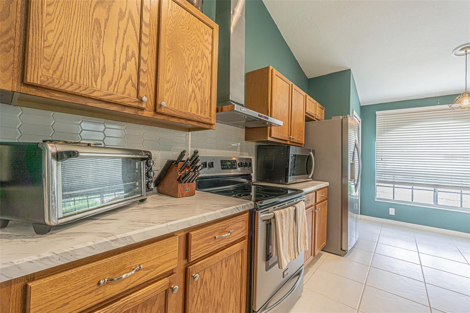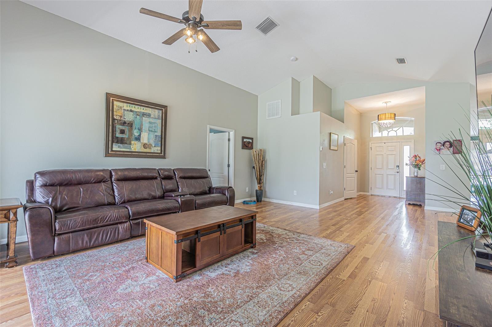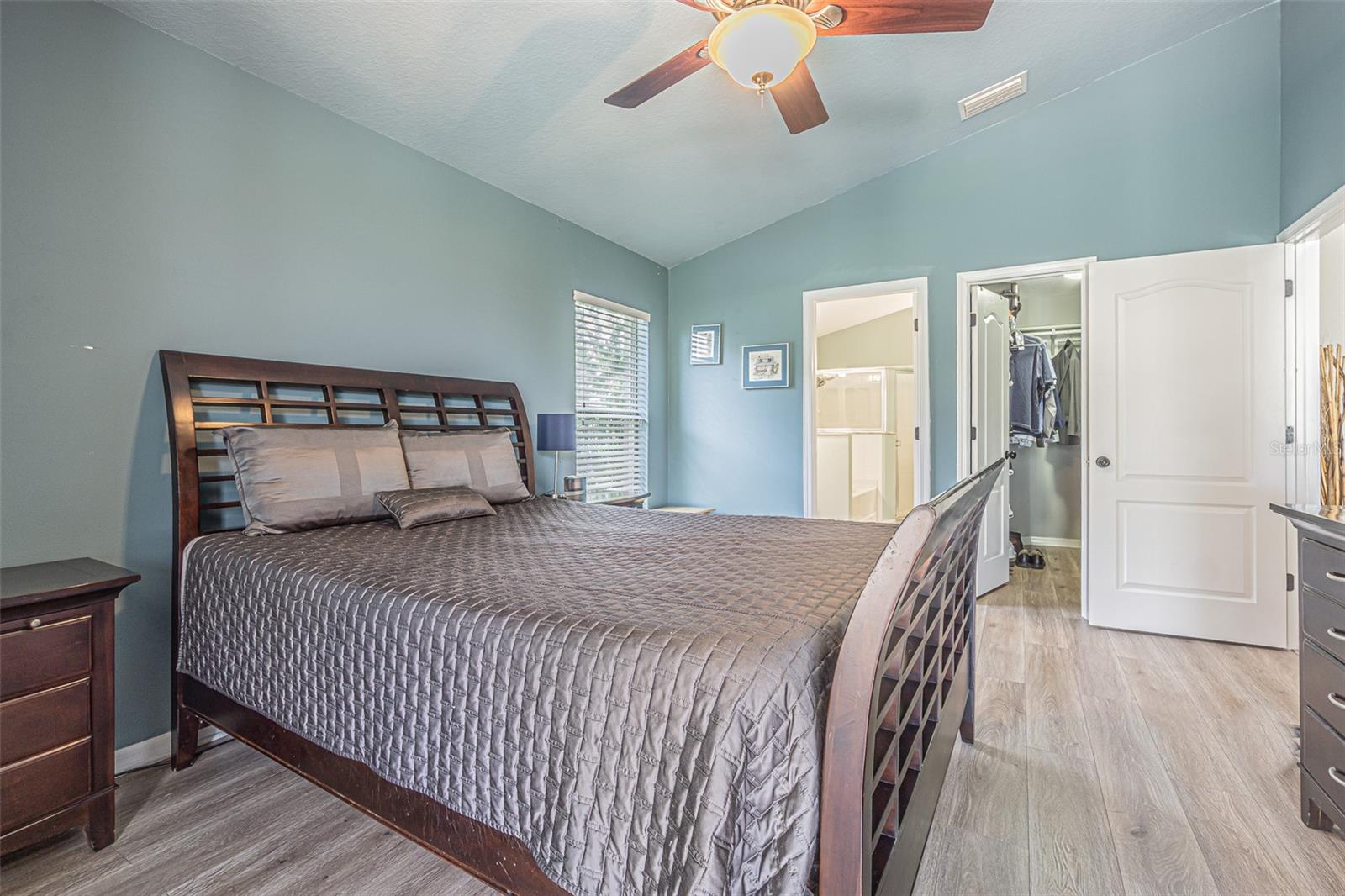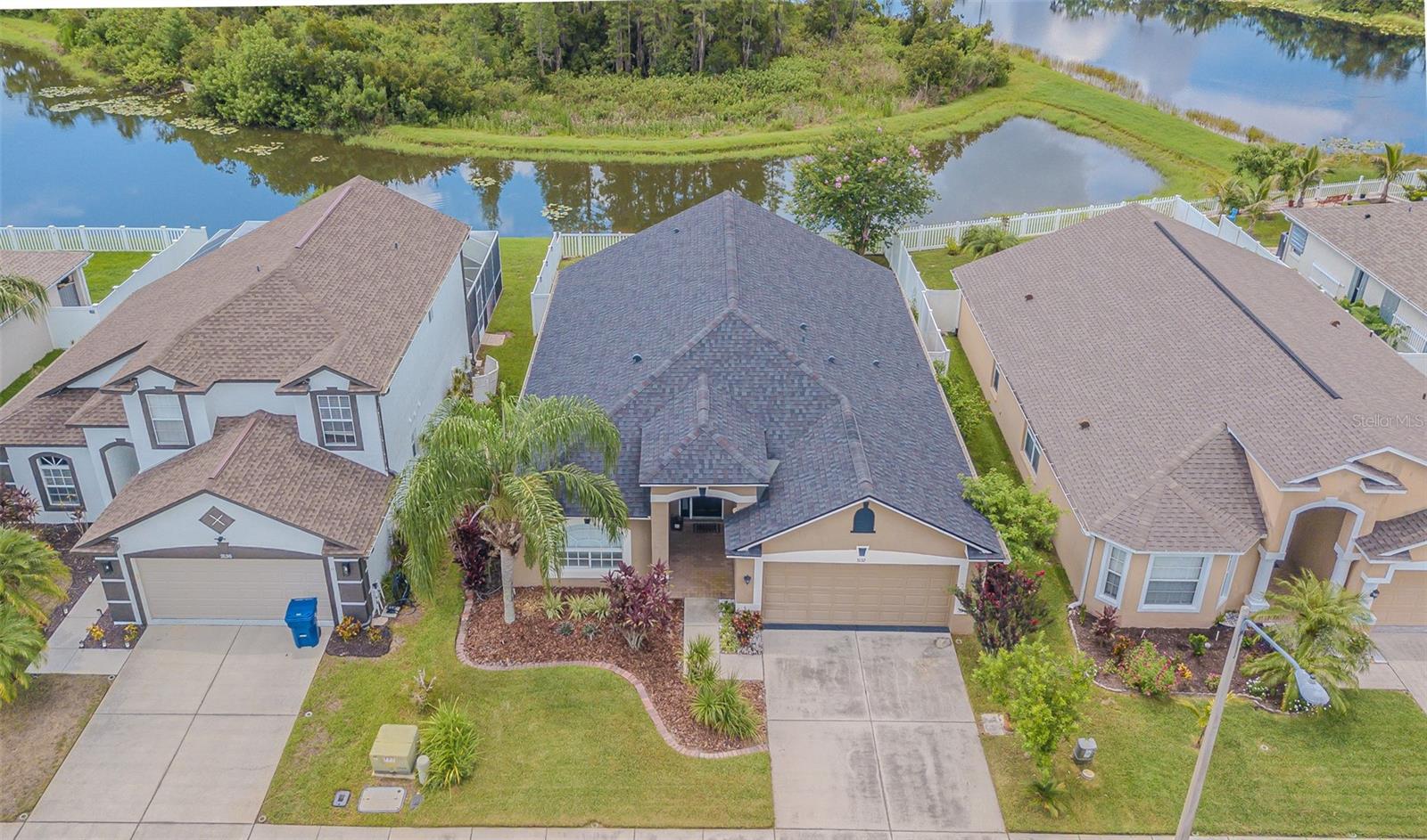 Welcome to this beautifully updated 3-bedroom, 2-bathroom home, offering 1,640 square feet of well-designed living space and exceptional curb appeal. Nestled just a few homes from a quiet cul-de-sac, this 2006-built residence features a fully fenced yard, lush landscaping, and a charming pavered entryway. Inside, you'll find high ceilings, recessed lighting, and wood-look laminate flooring throughout the main living areas and the spacious primary suite. The thoughtfully designed layout includes a stylish kitchen with solid wood cabinetry, stainless steel appliances with range hood, a modern backsplash, and a laminate countertop with a quartz-inspired design. A convenient breakfast bar and adjacent dining area seamlessly flow into the bright and open living room--ideal for entertaining and everyday living. Sliding glass doors lead to the screened and tiled lanai, where you can enjoy tranquil preserve and water views in complete privacy. The primary suite also features lanai access, a large walk-in closet, and an en-suite bath with a soaking tub, walk-in shower, and double vanity. Additional highlights include an interior laundry room that connects to the garage--washer and dryer included--along with notable upgrades such as a new roof (2021), new HVAC (2021), newer hot water heater, soothing interior paint colors, and upgraded lighting and fans throughout. Located in the highly desirable Concord Station community, residents enjoy resort-style amenities including a clubhouse, sparkling community pool with splash zone, fitness center, tennis courts, basketball courts, and more. Don't miss your chance to own this move-in ready home with scenic views and access to top-tier amenities. Schedule your private showing today!