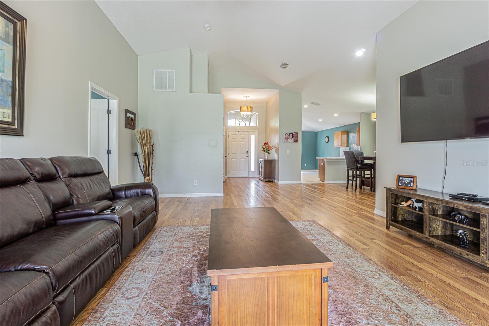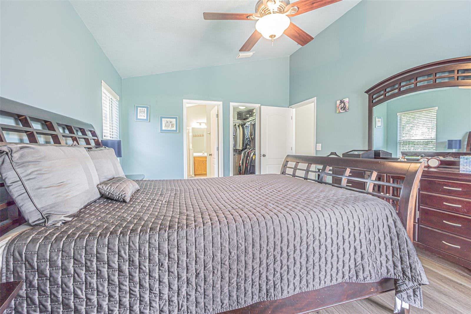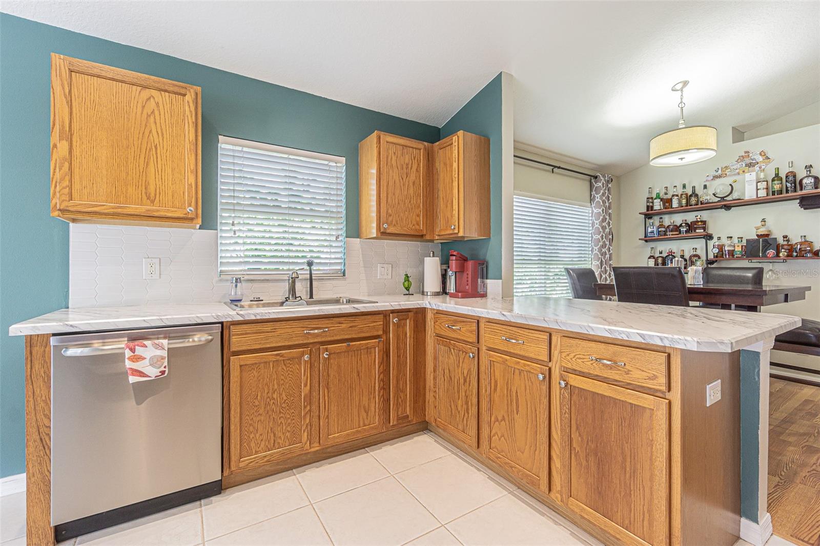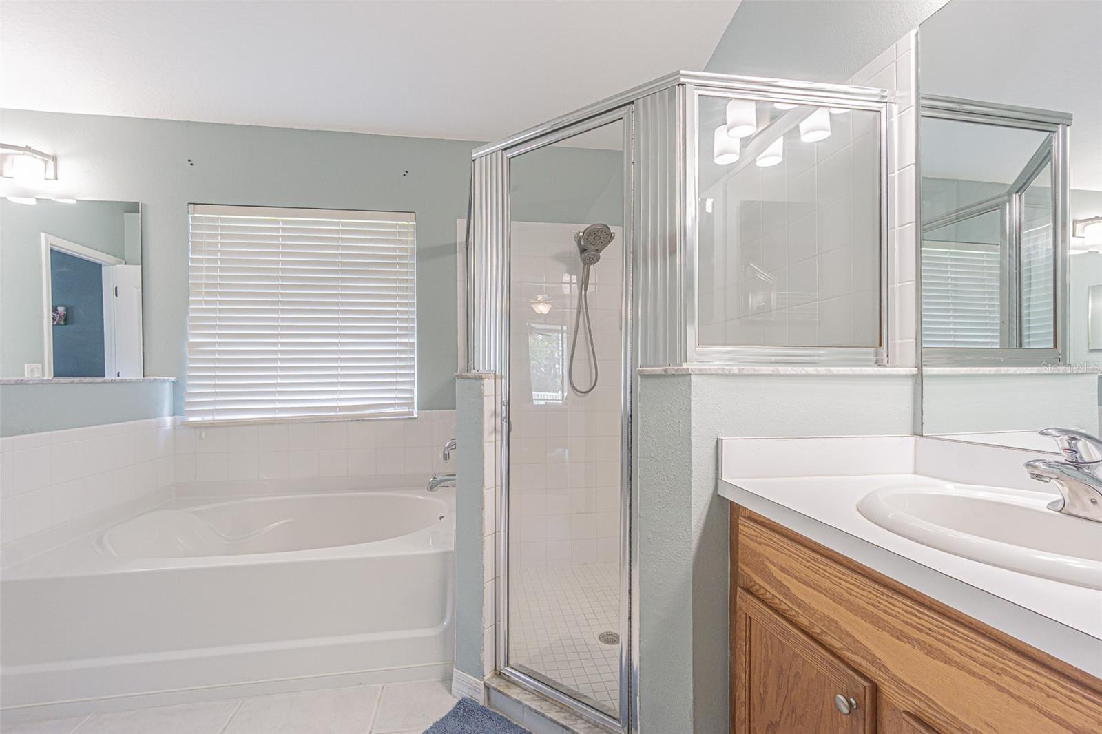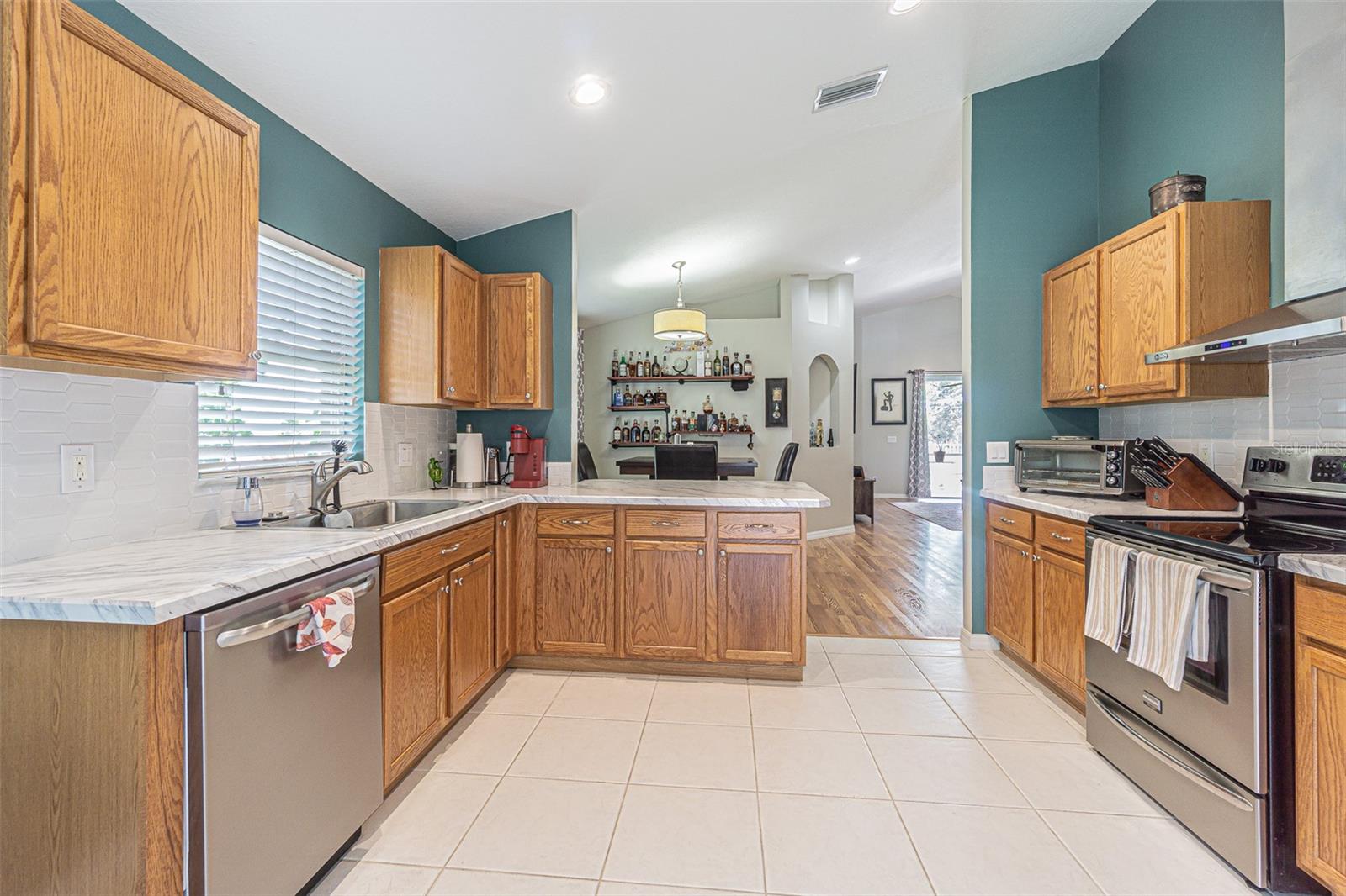 Welcome to this beautifully updated 3-bedroom, 2-bathroom home, offering 1,640 square feet of well-designed living space and exceptional curb appeal. Nestled just a few homes from a quiet cul-de-sac, this 2006-built residence features a fully fenced yard, lush landscaping, and a charming pavered entryway. Inside, you'll find high ceilings, recessed lighting, and wood-look laminate flooring throughout the main living areas and the spacious primary suite. The thoughtfully designed layout includes a stylish kitchen with solid wood cabinetry, stainless steel appliances with range hood, a modern backsplash, and a laminate countertop with a quartz-inspired design. A convenient breakfast bar and adjacent dining area seamlessly flow into the bright and open living room--ideal for entertaining and everyday living. Sliding glass doors lead to the screened and tiled lanai, where you can enjoy tranquil preserve and water views in complete privacy. The primary suite also features lanai access, a large walk-in closet, and an en-suite bath with a soaking tub, walk-in shower, and double vanity. Additional highlights include an interior laundry room that connects to the garage--washer and dryer included--along with notable upgrades such as a new roof (2021), new HVAC (2021), newer hot water heater, soothing interior paint colors, and upgraded lighting and fans throughout. Located in the highly desirable Concord Station community, residents enjoy resort-style amenities including a clubhouse, sparkling community pool with splash zone, fitness center, tennis courts, basketball courts, and more. Don't miss your chance to own this move-in ready home with scenic views and access to top-tier amenities. Schedule your private showing today!
