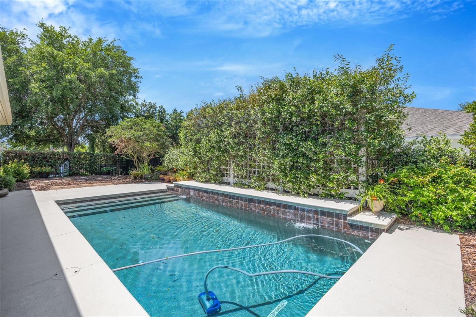 A Must See! Come view this beautiful West Bay home in the desirable Starling Village in Fishhawk! Featuring 4 bedrooms, 3 full bathrooms, 3 car garage, huge living space with office space and saltwater heated pool - this home has been well cared for by the original owners and is **Move-In Ready**! Situated on a corner lot and bursting with curb appeal - you will instantly feel at home upon arrival. The brick pavered wrap-around front/side porch boasts bungalow style craftsman columns and lush landscaping making it the perfect spot to relax with a good book or unwind after a long day. Traveling inside, you are greeted by the impressive foyer featuring 12 foot double tray ceilings and wide entry that opens up into the expansive main living space! There is a seamless flow between the kitchen, grand living room, and outdoor lanai space - making it the perfect home for entertaining! The expansive gourmet kitchen features newer stainless steel appliances, gas range, huge island with cabinet storage, walk in pantry, abundance of 42" wood cabinets, elegant backsplash, and granite countertops. The fully fenced backyard is a Florida oasis! Cool off and enjoy your private sparkling blue saltwater heated pool adorned by the custom trellis and beautiful blooming jasmine! Relish in the low maintenance lifestyle of the zero scape backyard. The **Triple-Split** floor plan grants privacy for all! Spacious Owner's Retreat features tray ceilings, newer carpet, large ensuite bathroom, and huge walk-in closet. The en-suite primary bathroom features dual sinks on separate vanities, large soaking tub, walk-in glass shower and plenty of additional storage. The secondary bedrooms are nicely sized with ample closet space and high ceilings. The 4th bedroom features glass french doors and has its own entry outside onto the wrap around porch allowing it to serve as an office if needed or makes for a great room for guests. The flex space is just off the kitchen and features sliding glass doors out to the lanai - the ideal space for an office/den, playroom, or more. **3-CAR GARAGE & Oversized Driveway** The irrigation system works on reclaimed water ~ an added bonus! Additional upgrades/features include: 8 foot doors throughout, all appliances replaced within the last 3 years, new pool heater replaced within the last 2 years, new exterior and interior paint, Tommy Bahama ceiling fans throughout, custom drapes, tankless hot water heater, surround sound system in place, new garage door openers, & more!! Fishhawk homeowners enjoy luxury resort style amenities such as pools, tennis, dog parks, playgrounds, walking trails, fitness centers, sports complex & more! Located near all the needed conveniences of life, top rated schools, and an easy commute to I-75, Selmon Expressway, MacDill AFB, beautiful beaches and theme parks - this is a prime location. Schedule your private showing today!
