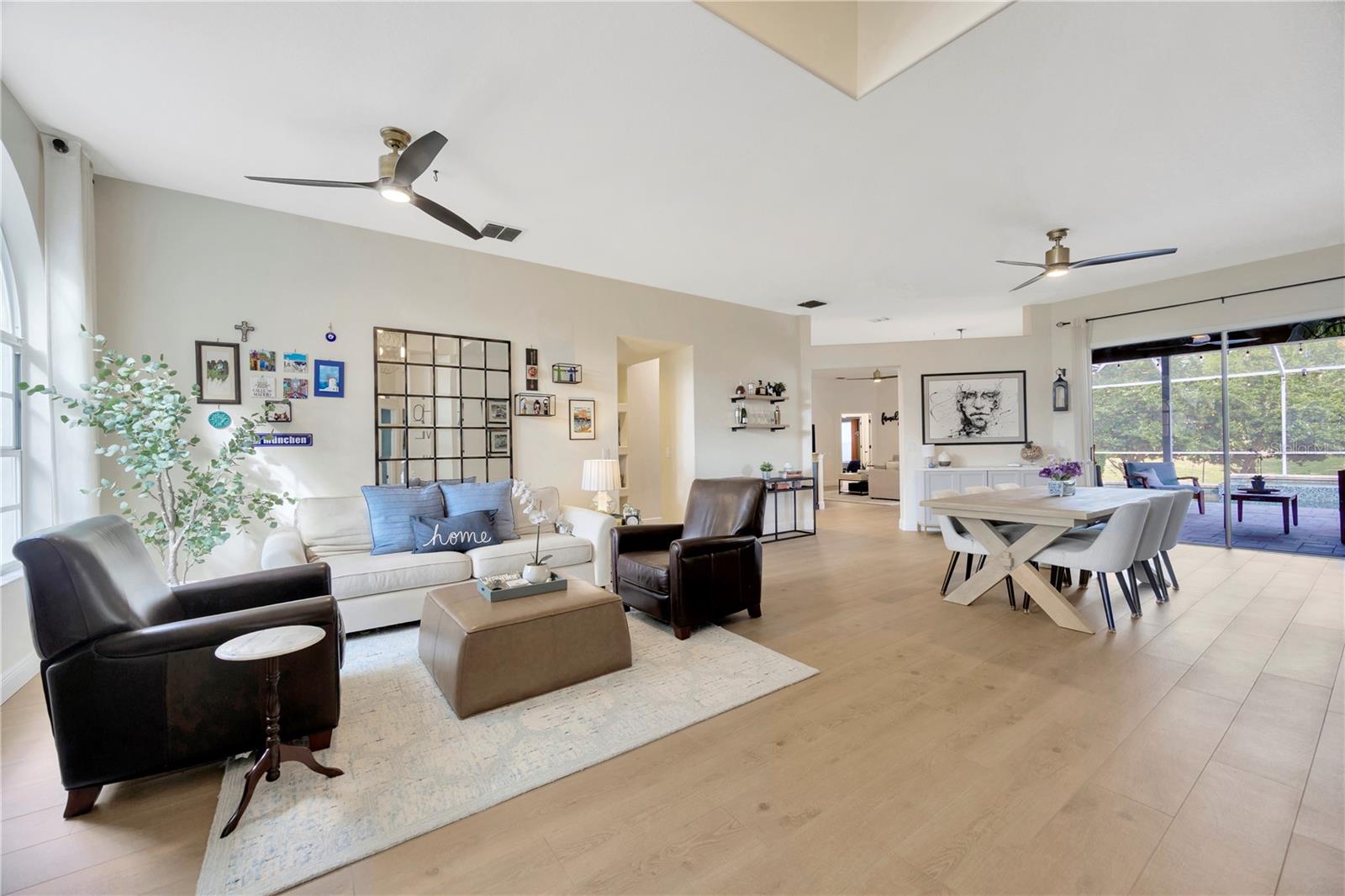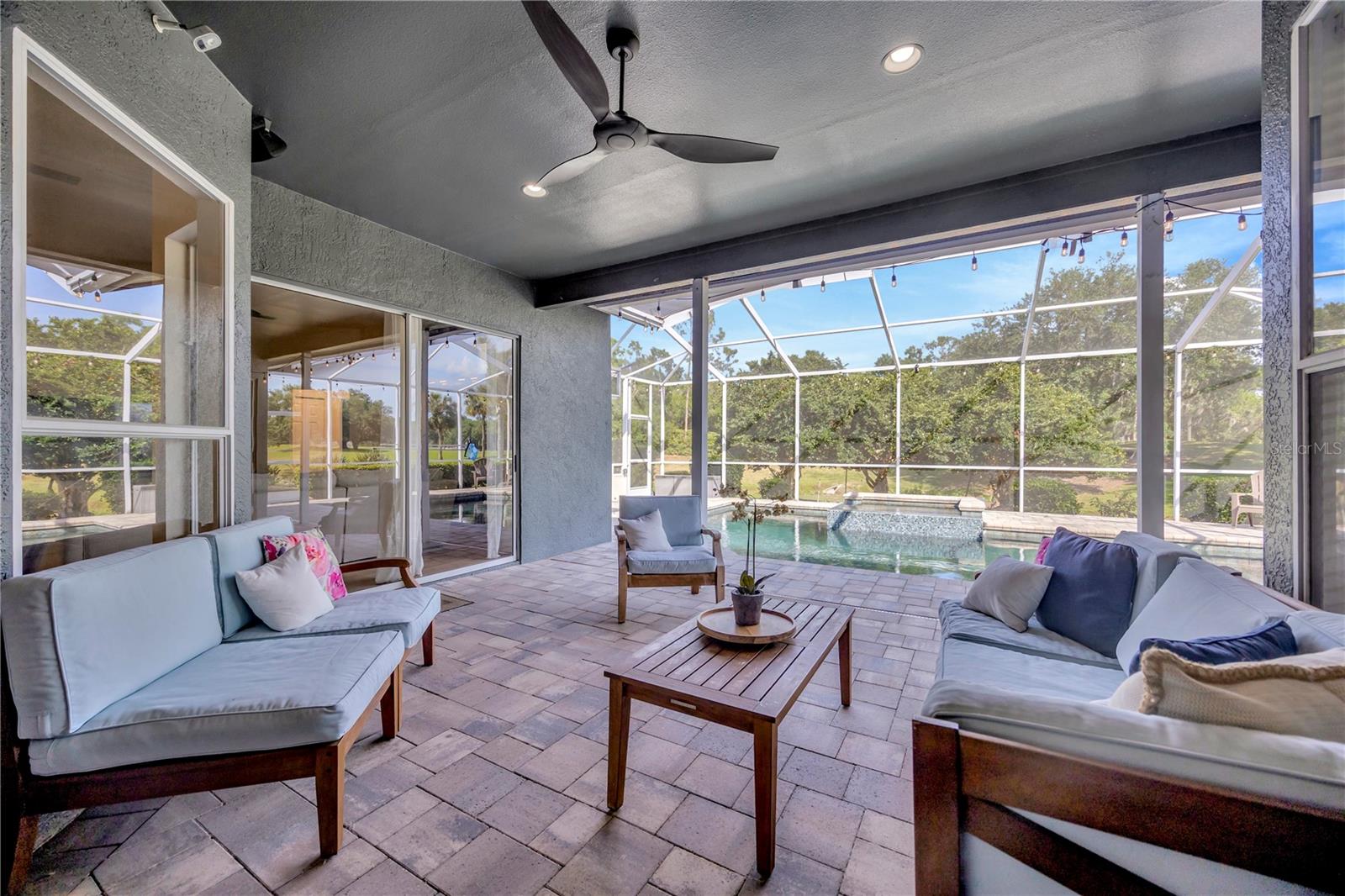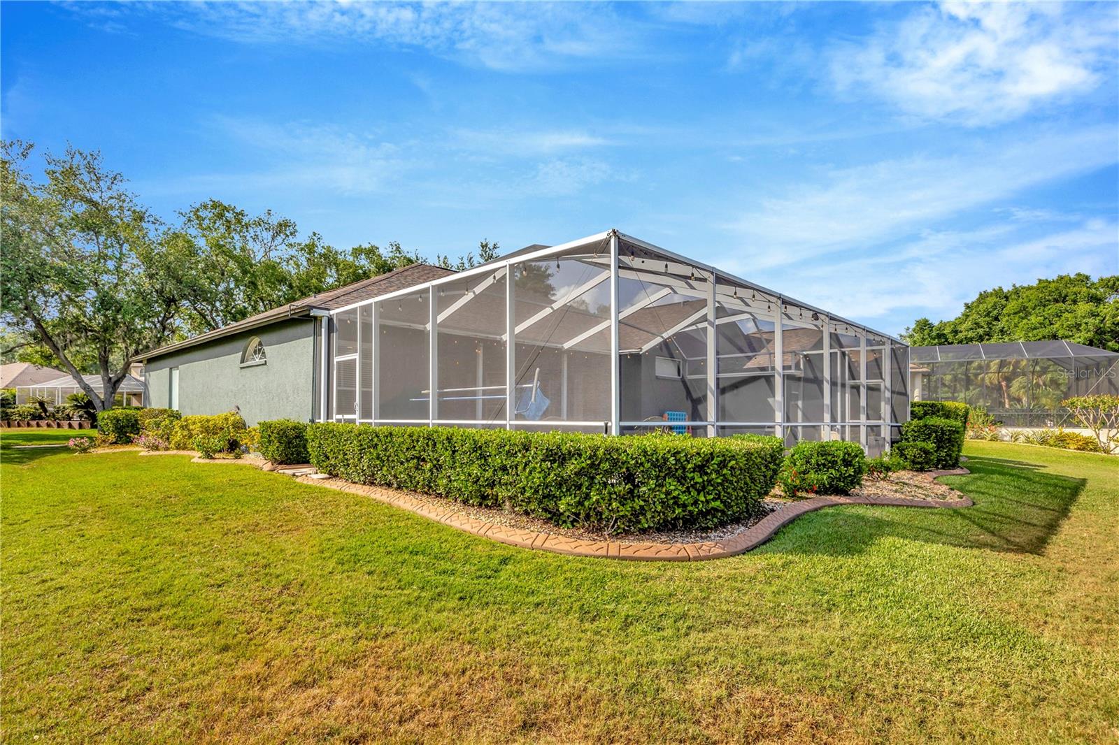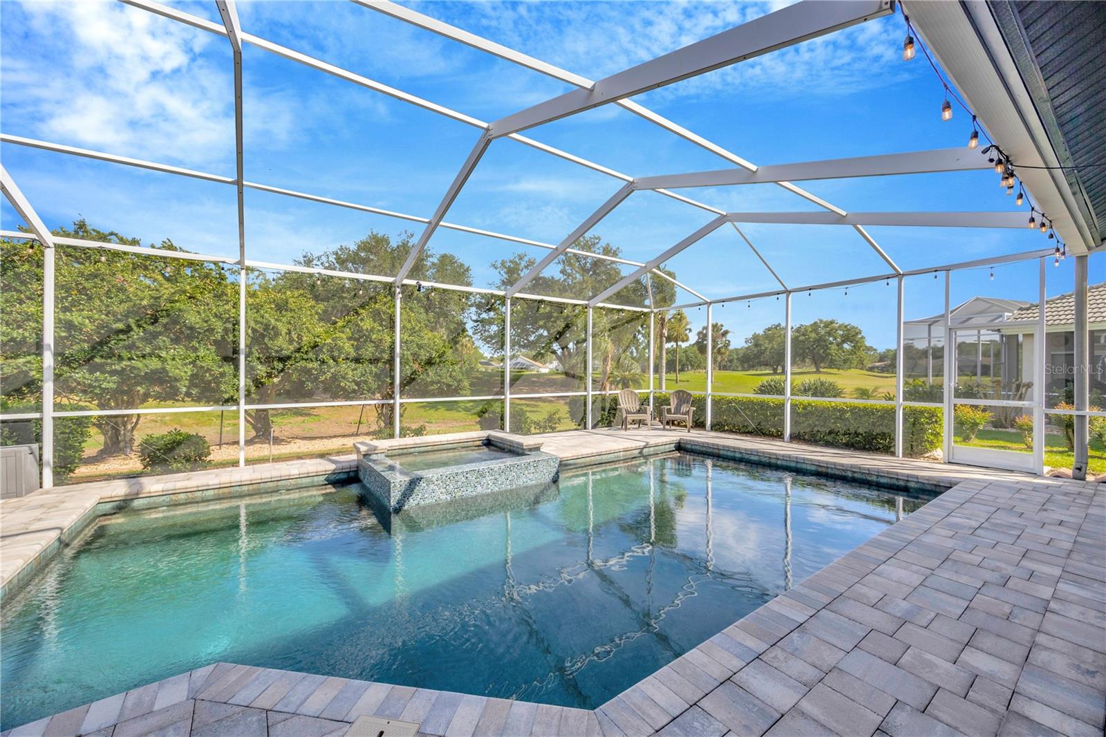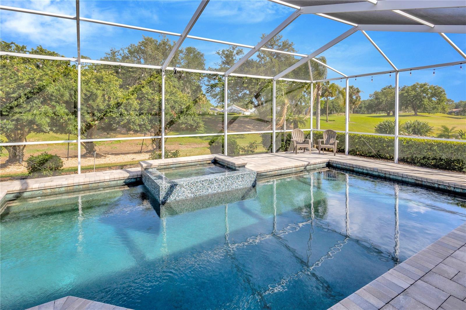 Come and see this impeccably maintain GOLF COURSE POOL HOME in River Hills! Open floor plan w/high ceilings greet you and quickly draws your eye to your private outdoor living space w/sparkling blue pool & spa ~ a welcoming space to host family gatherings or unwind w/a cool drink after a stressful day. Large windows throughout allow for expansive pool & golf course views from every angle & allows natural light to spill in throughout every room. The floor plan creates a smooth easy flow between the kitchen, family room & outdoor living space, perfect for entertaining! Admire the elegant and well designed upgrades throughout creating a perfect blend of modern atheistics and homey feelings! New large plank wood-like tile throughout! Kitchen includes newer stainless steel appliances, granite counter tops, and an abundance of cabinets. Large breakfast bar w/separate eat-in dinette area overlooks the family room, outdoor living space & pool. Spilt floor plan creates a private Owner's Retreat complete with walk in closets & sliding doors leading out to the pool. Ensuite master bath includes dual sinks, large soaking tub w/separate glass shower. The secondary bedrooms are nicely sized with ample closet space featuring built-in closet systems. The 5th bedroom can also serve as an office, den, or workout room - the perfect flex space. The pool & spa create an outdoor oasis overlooking the 5th Fairway and green yet landscaped to allow privacy. Oversized two car garage giving you extra room for storage or a golf cart. **New HVAC in 2025 New floors in 2024, new pool cage 2024, pool & spa resurfaced in 2021, new water heater in 2024, new water softener in 2023, & more!** HOA dues give you the luxury of Residential Membership granting you access to restaurants, pool, playgrounds, nature trails & other amenities. Golf and tennis enthusiasts welcome! River Hills is conveniently located to restaurants, entertainment, "A-Rated" school systems and to our amazing Florida beaches & theme parks. Easy commute access to I4, I75 & Crosstown Expressway. Call today for your private showing & experience the Florida lifestyle!