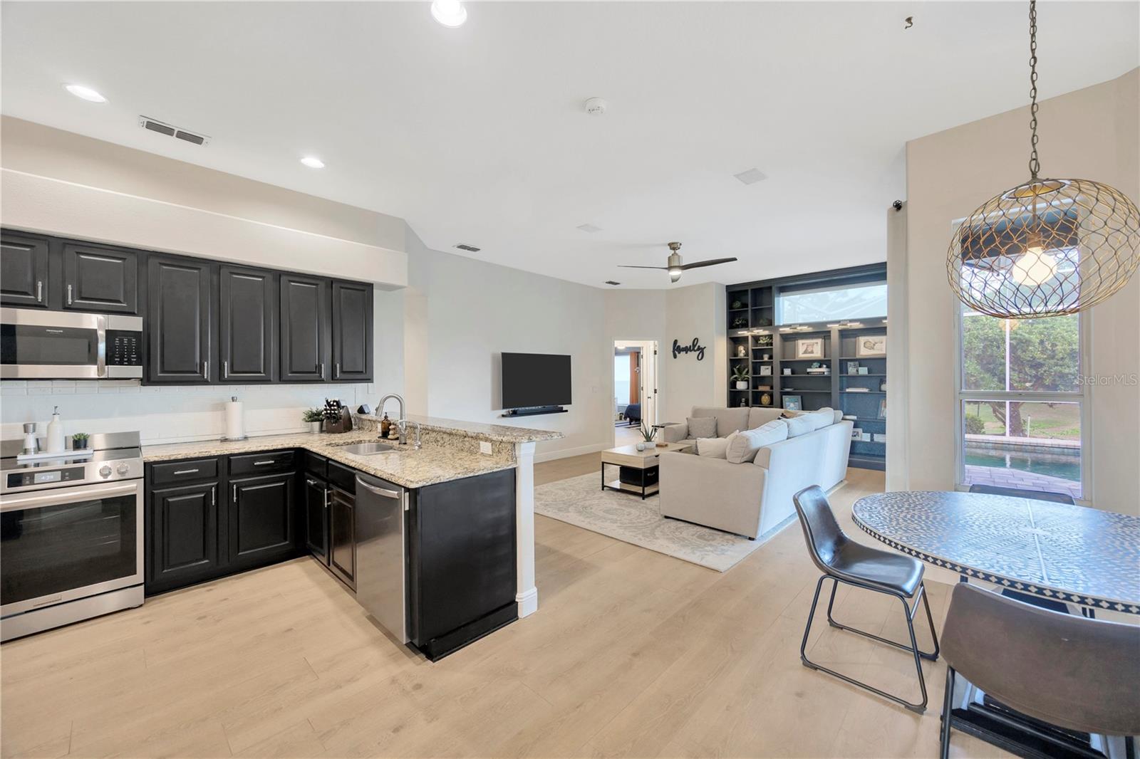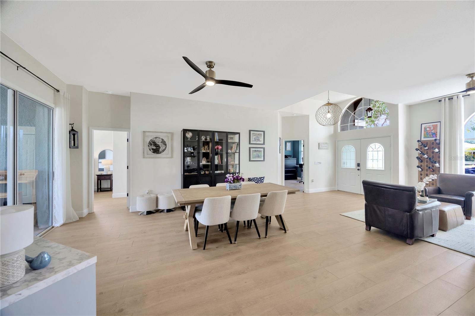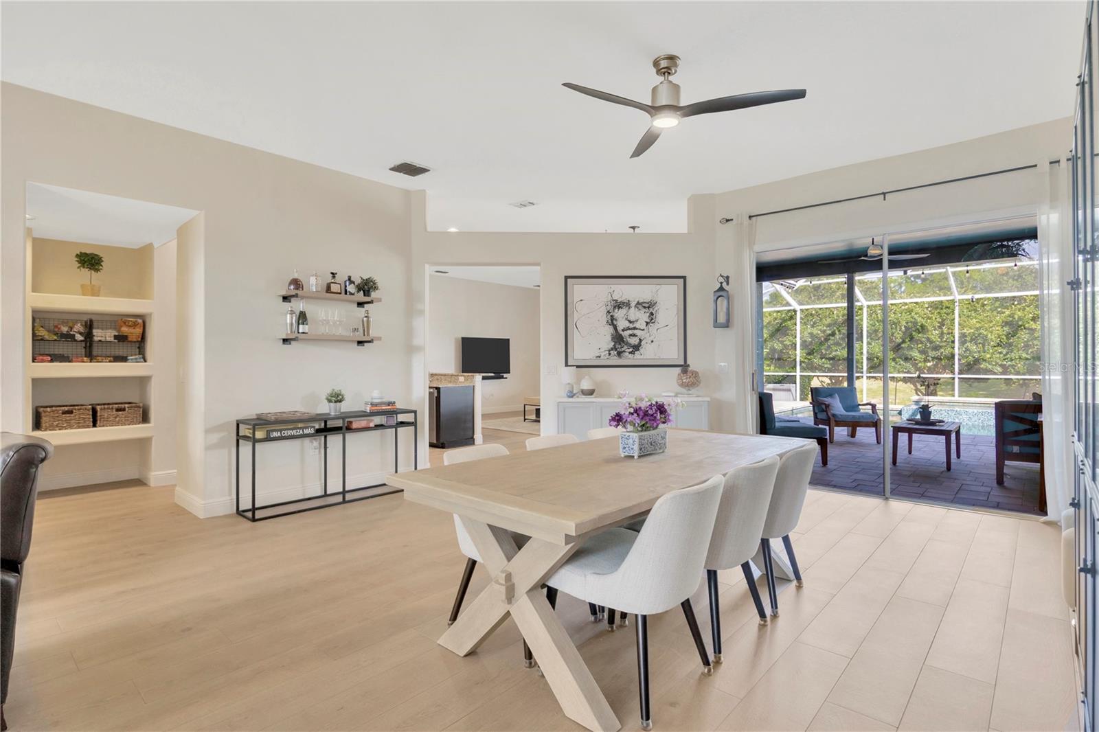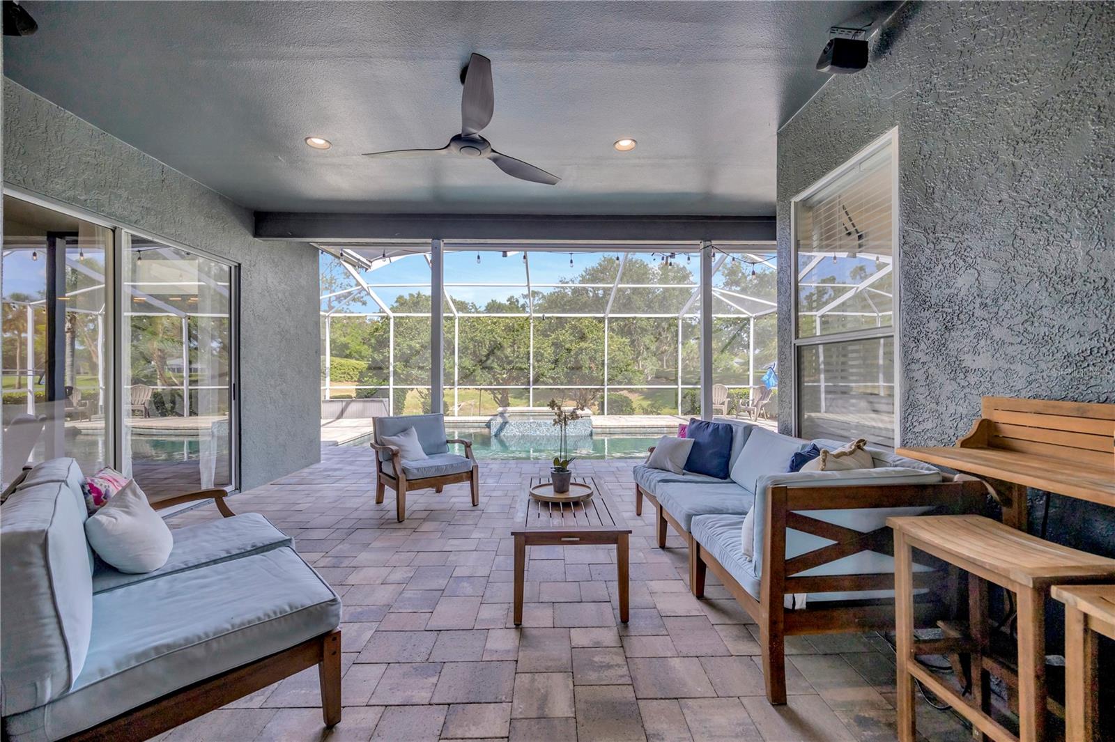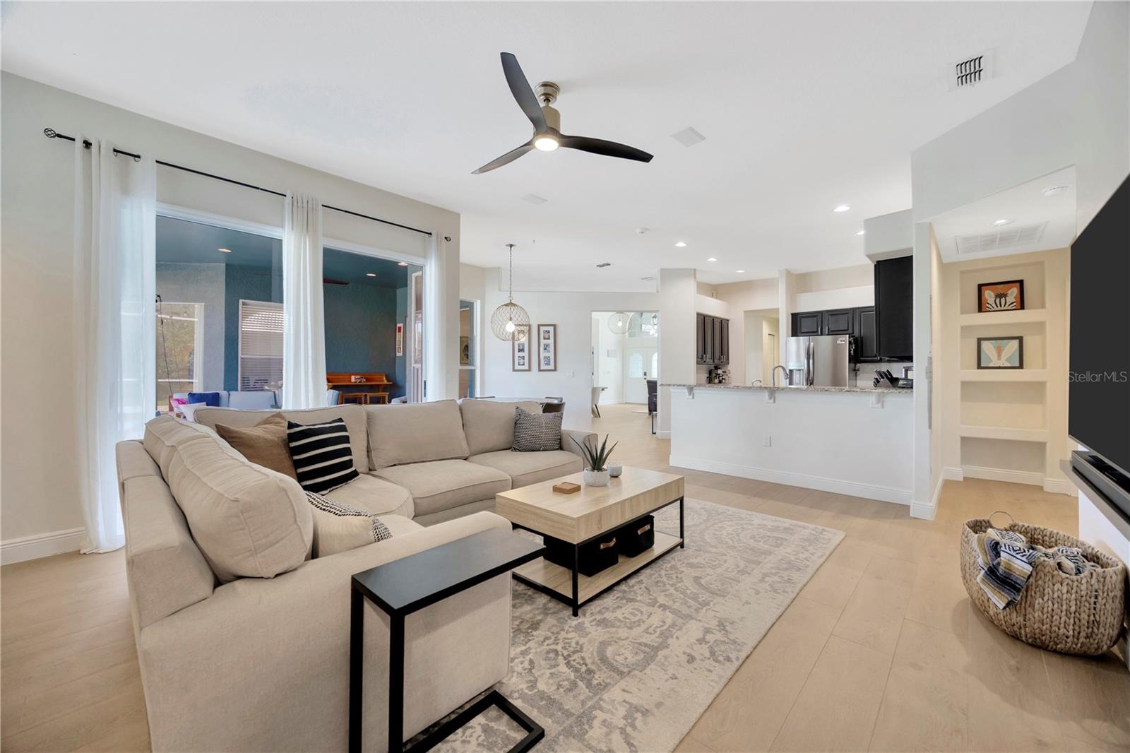 Come and see this impeccably maintain GOLF COURSE POOL HOME in River Hills! Open floor plan w/high ceilings greet you and quickly draws your eye to your private outdoor living space w/sparkling blue pool & spa ~ a welcoming space to host family gatherings or unwind w/a cool drink after a stressful day. Large windows throughout allow for expansive pool & golf course views from every angle & allows natural light to spill in throughout every room. The floor plan creates a smooth easy flow between the kitchen, family room & outdoor living space, perfect for entertaining! Admire the elegant and well designed upgrades throughout creating a perfect blend of modern atheistics and homey feelings! New large plank wood-like tile throughout! Kitchen includes newer stainless steel appliances, granite counter tops, and an abundance of cabinets. Large breakfast bar w/separate eat-in dinette area overlooks the family room, outdoor living space & pool. Spilt floor plan creates a private Owner's Retreat complete with walk in closets & sliding doors leading out to the pool. Ensuite master bath includes dual sinks, large soaking tub w/separate glass shower. The secondary bedrooms are nicely sized with ample closet space featuring built-in closet systems. The 5th bedroom can also serve as an office, den, or workout room - the perfect flex space. The pool & spa create an outdoor oasis overlooking the 5th Fairway and green yet landscaped to allow privacy. Oversized two car garage giving you extra room for storage or a golf cart. **New HVAC in 2025 New floors in 2024, new pool cage 2024, pool & spa resurfaced in 2021, new water heater in 2024, new water softener in 2023, & more!** HOA dues give you the luxury of Residential Membership granting you access to restaurants, pool, playgrounds, nature trails & other amenities. Golf and tennis enthusiasts welcome! River Hills is conveniently located to restaurants, entertainment, "A-Rated" school systems and to our amazing Florida beaches & theme parks. Easy commute access to I4, I75 & Crosstown Expressway. Call today for your private showing & experience the Florida lifestyle!