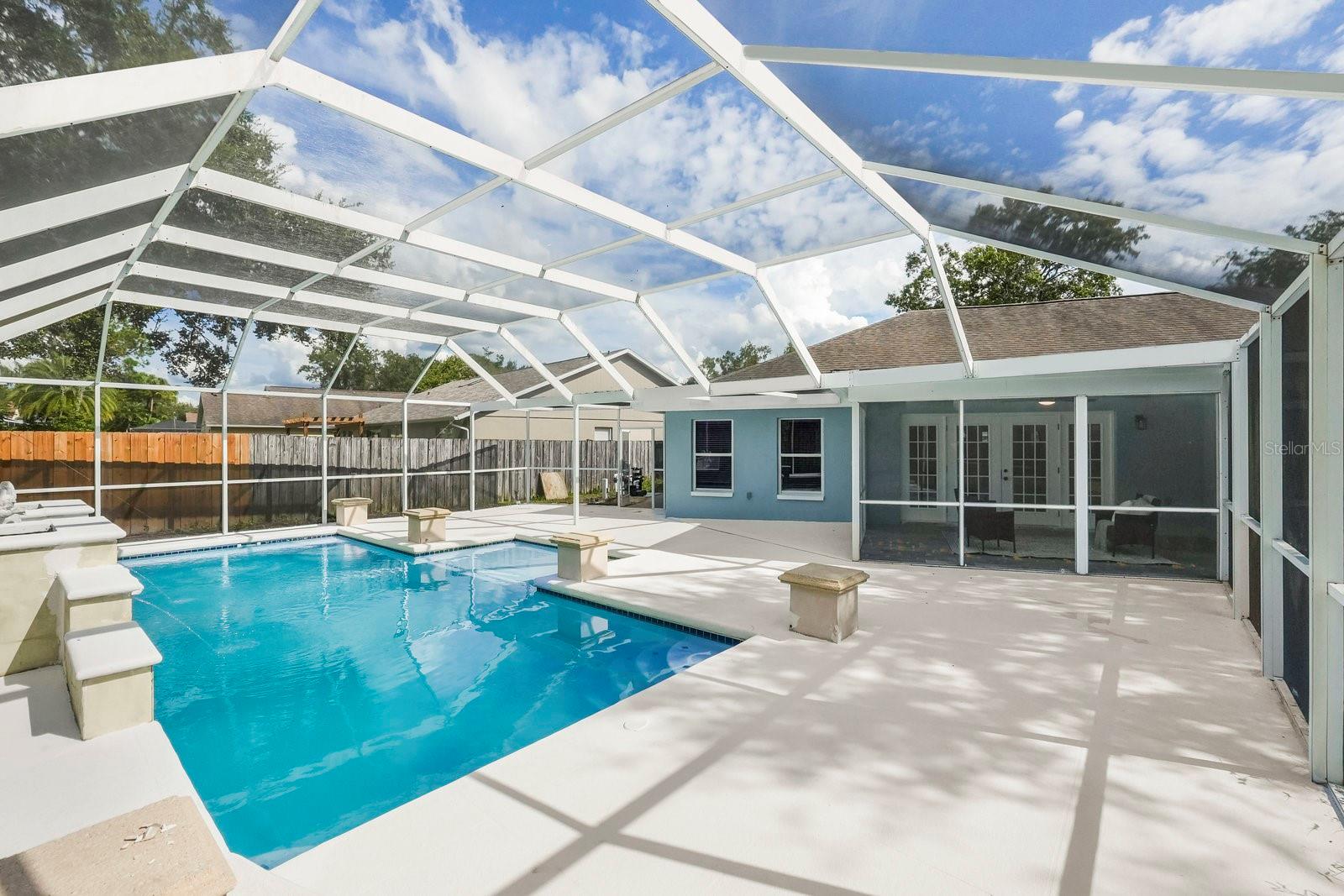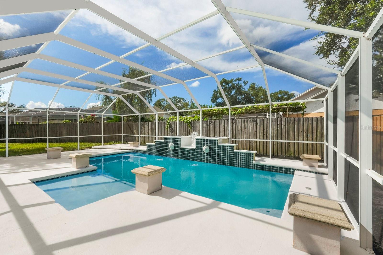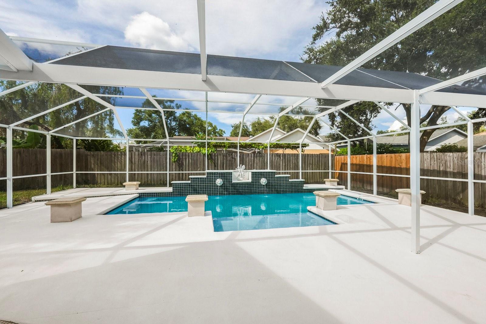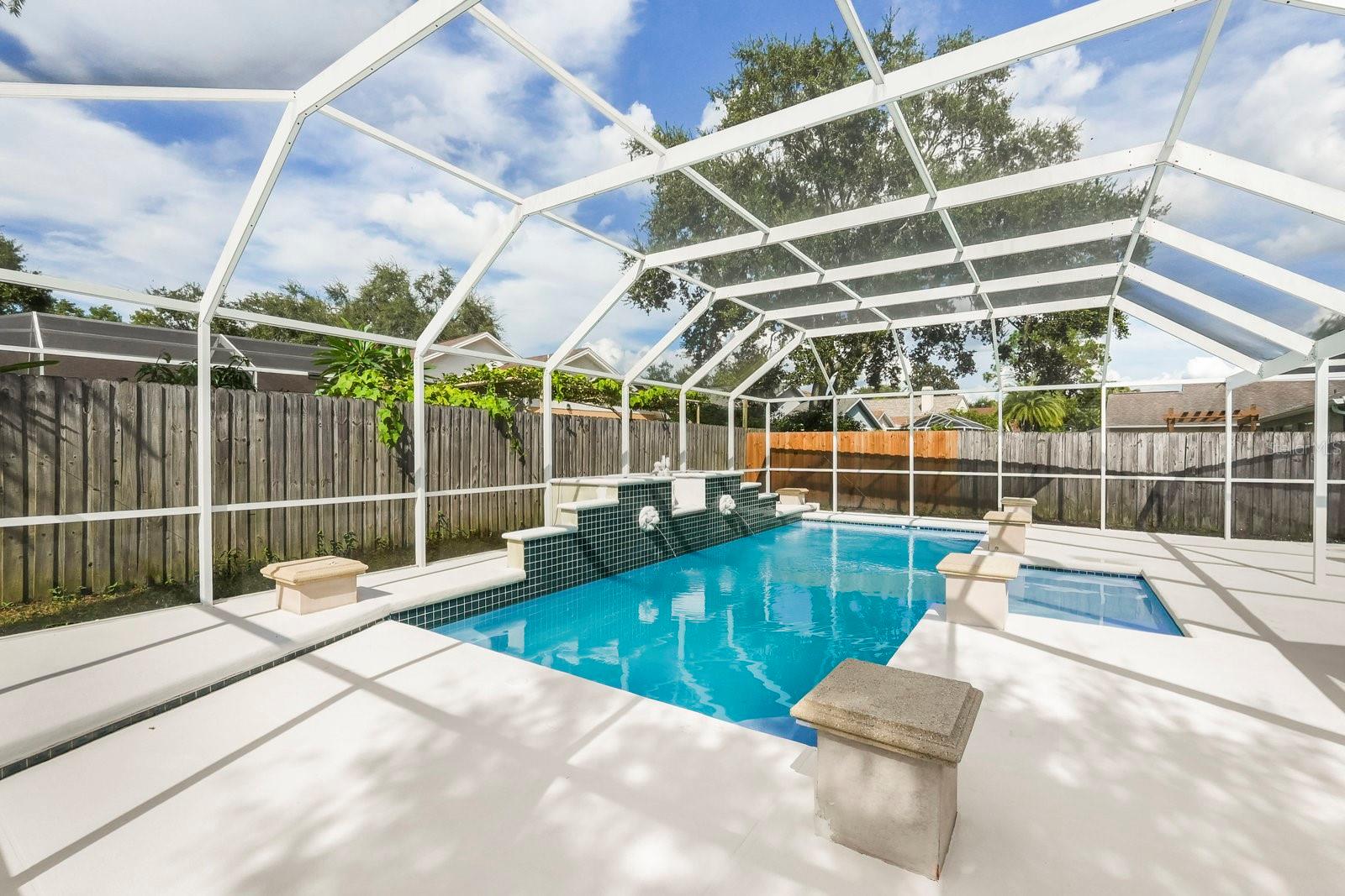 Discover the perfect blend of luxury and comfort in this stunningly renovated 4-bedroom, 2-bathroom pool home SANCTUARY located in the highly desirable Cross Creek Subdivision of New Tampa. With over 2,300 square feet of thoughtfully designed living space, this home offers an open and inviting layout ideal for both entertaining and everyday living. The formal living room, office, and dining area flow seamlessly into a spacious family room, while the fully remodeled designer kitchen features sleek modern cabinetry, quartz countertops, stainless-steel appliances, a breakfast bar, and a cozy eat-in nook. New luxury vinyl flooring adds warmth and sophistication throughout the living areas. The private master suite is a true retreat, complete with a generous walk-in closet and a spa-inspired en-suite bathroom featuring custom dual vanities and an oversized walk-in shower. A split-bedroom floor plan provides privacy with three additional well-sized bedrooms and a beautifully updated second bathroom. Step outside to your own personal oasis, where a screened-in lanai and sparkling pool are surrounded by lush landscaping and a fully fenced backyard, offering the perfect setting for relaxation or entertaining. Ideally situated just minutes from top-rated schools, the University of South Florida, premier shopping, fine dining, and major highways, this exceptional home delivers the ultimate Florida lifestyle in one of New Tampa's most sought-after neighborhoods.