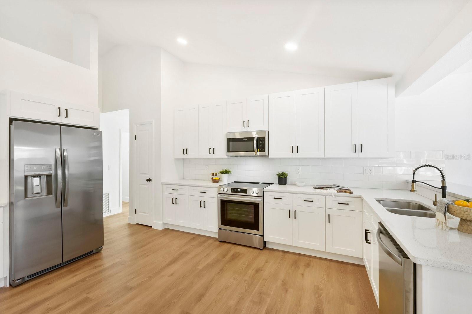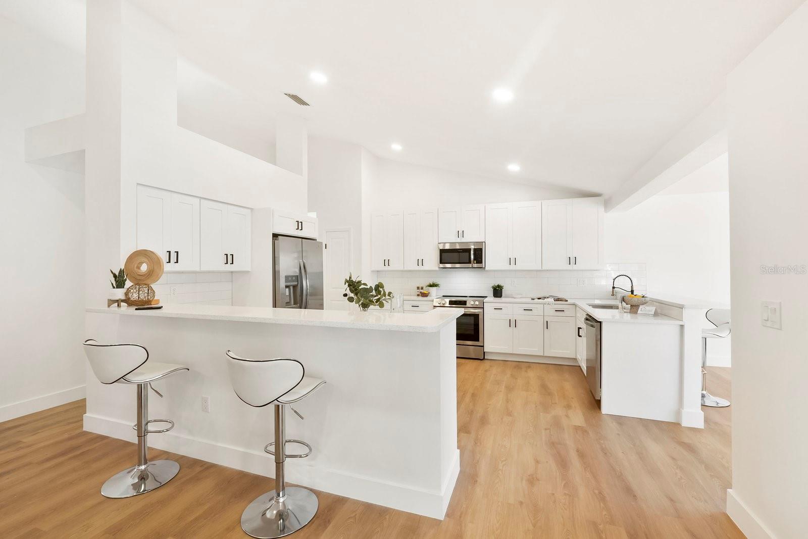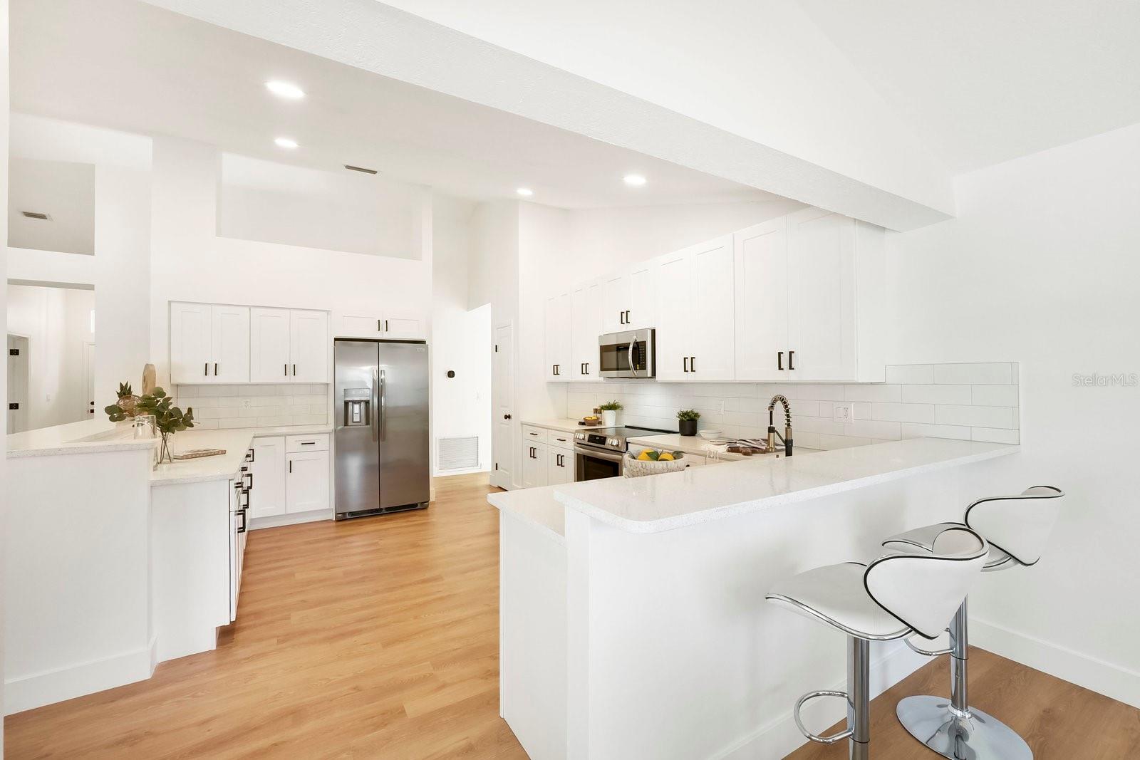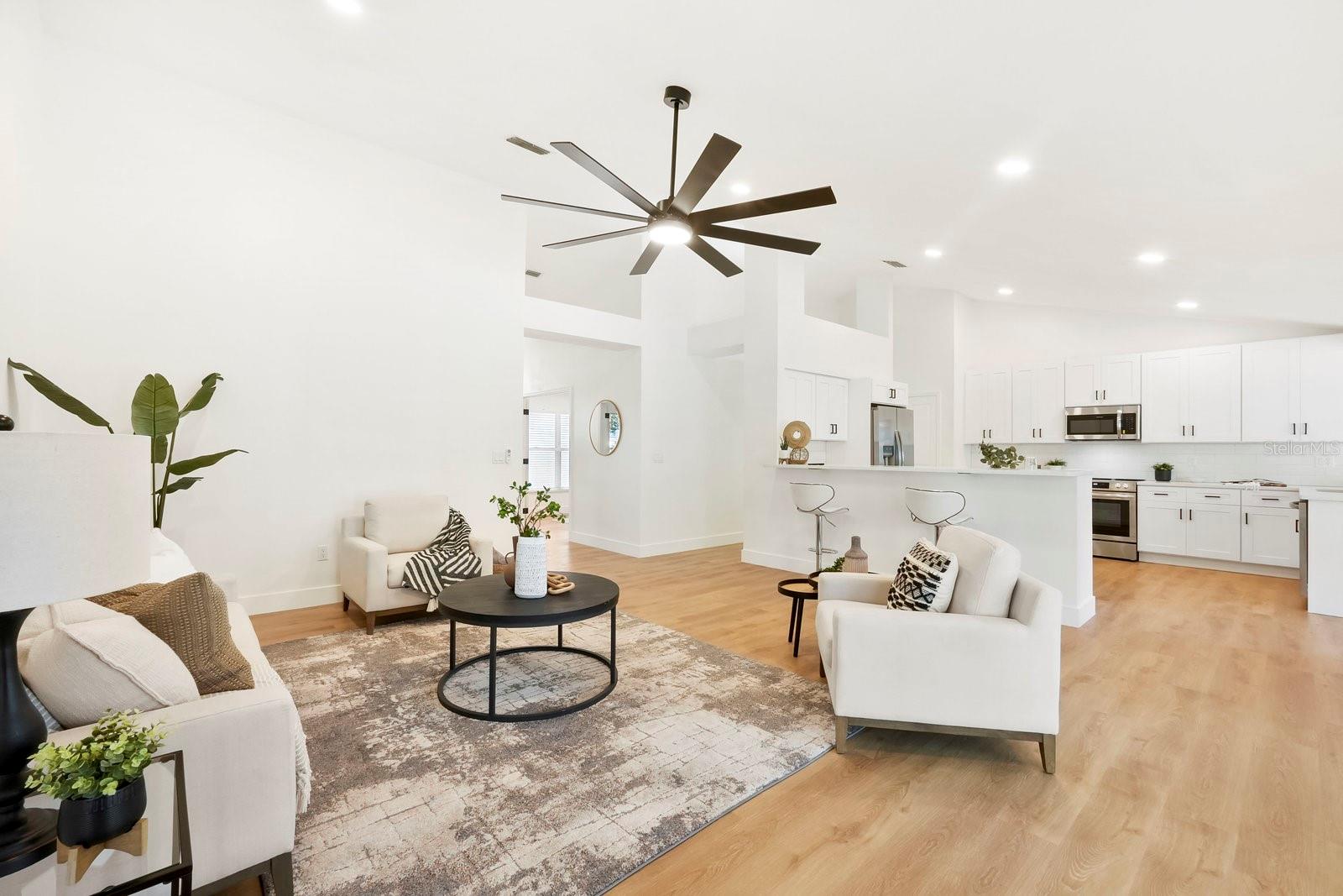 Discover the perfect blend of luxury and comfort in this stunningly renovated 4-bedroom, 2-bathroom pool home SANCTUARY located in the highly desirable Cross Creek Subdivision of New Tampa. With over 2,300 square feet of thoughtfully designed living space, this home offers an open and inviting layout ideal for both entertaining and everyday living. The formal living room, office, and dining area flow seamlessly into a spacious family room, while the fully remodeled designer kitchen features sleek modern cabinetry, quartz countertops, stainless-steel appliances, a breakfast bar, and a cozy eat-in nook. New luxury vinyl flooring adds warmth and sophistication throughout the living areas. The private master suite is a true retreat, complete with a generous walk-in closet and a spa-inspired en-suite bathroom featuring custom dual vanities and an oversized walk-in shower. A split-bedroom floor plan provides privacy with three additional well-sized bedrooms and a beautifully updated second bathroom. Step outside to your own personal oasis, where a screened-in lanai and sparkling pool are surrounded by lush landscaping and a fully fenced backyard, offering the perfect setting for relaxation or entertaining. Ideally situated just minutes from top-rated schools, the University of South Florida, premier shopping, fine dining, and major highways, this exceptional home delivers the ultimate Florida lifestyle in one of New Tampa's most sought-after neighborhoods.
